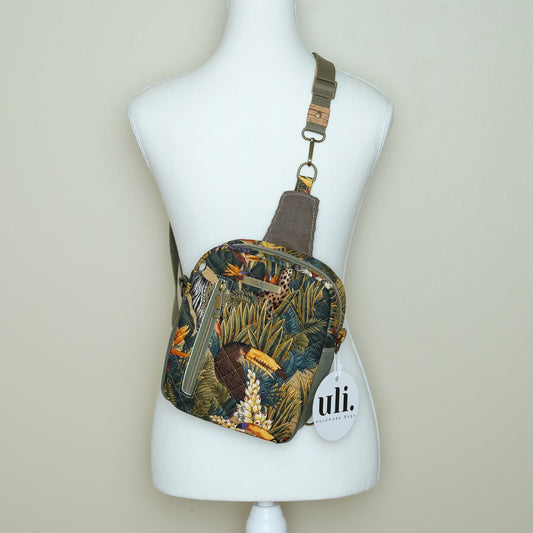 Quilted Halfmoon Crossbody Bag (Green Lime, Flowers)