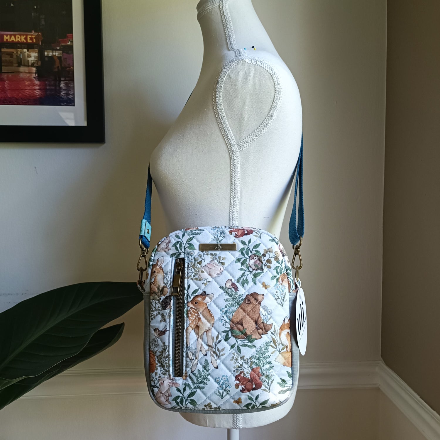 Quilted Travel Bag (White & Blue, Woodland Animal)